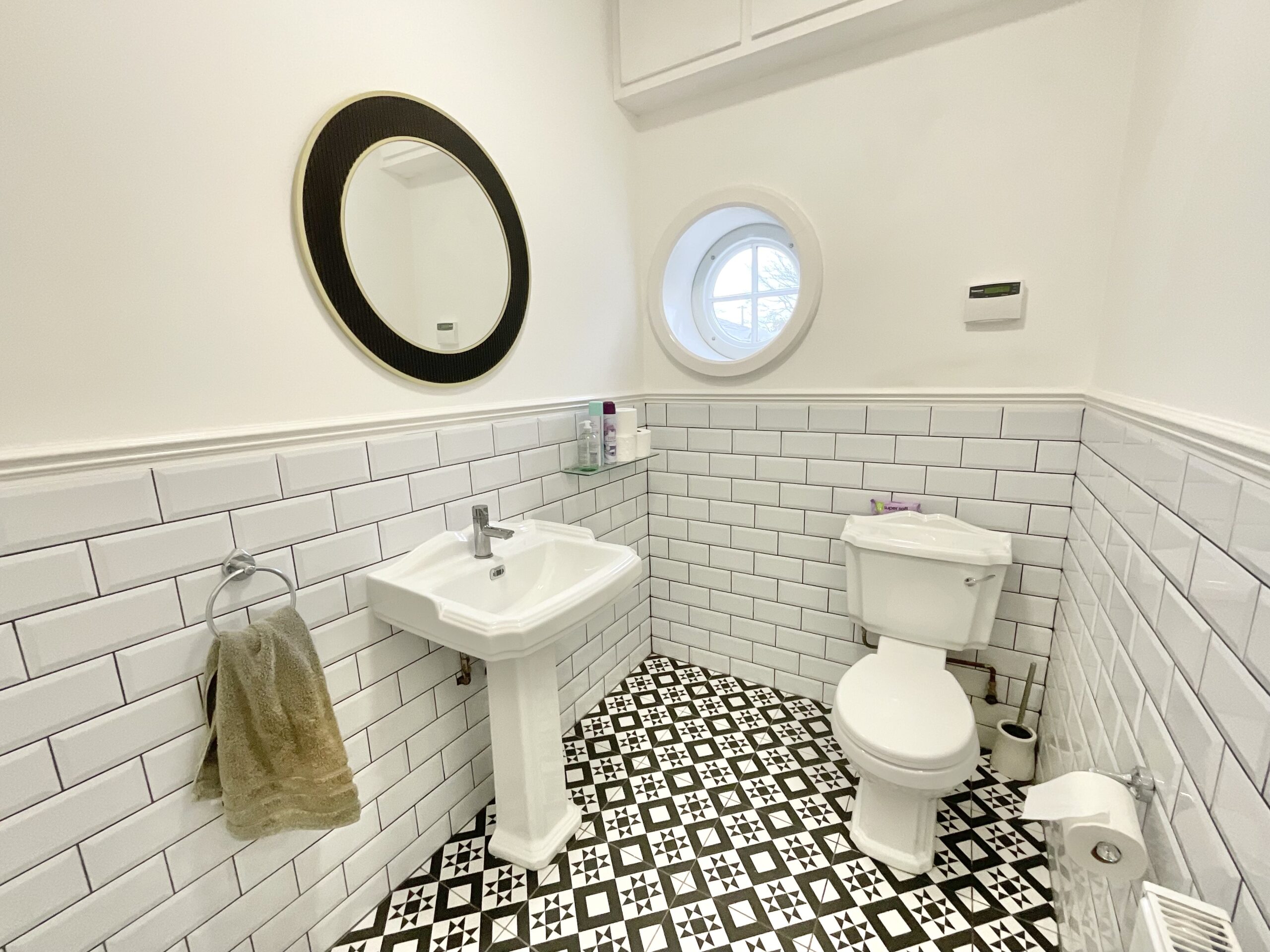The welcoming entrance hall immediately sets an impressive tone. Original dado and picture rails, decorative coving, high ceilings and generous room proportions showcase the grace and craftsmanship of the Edwardian era. Just off the entrance hallway is a well-appointed downstairs WC, perfectly positioned for guests and everyday convenience.