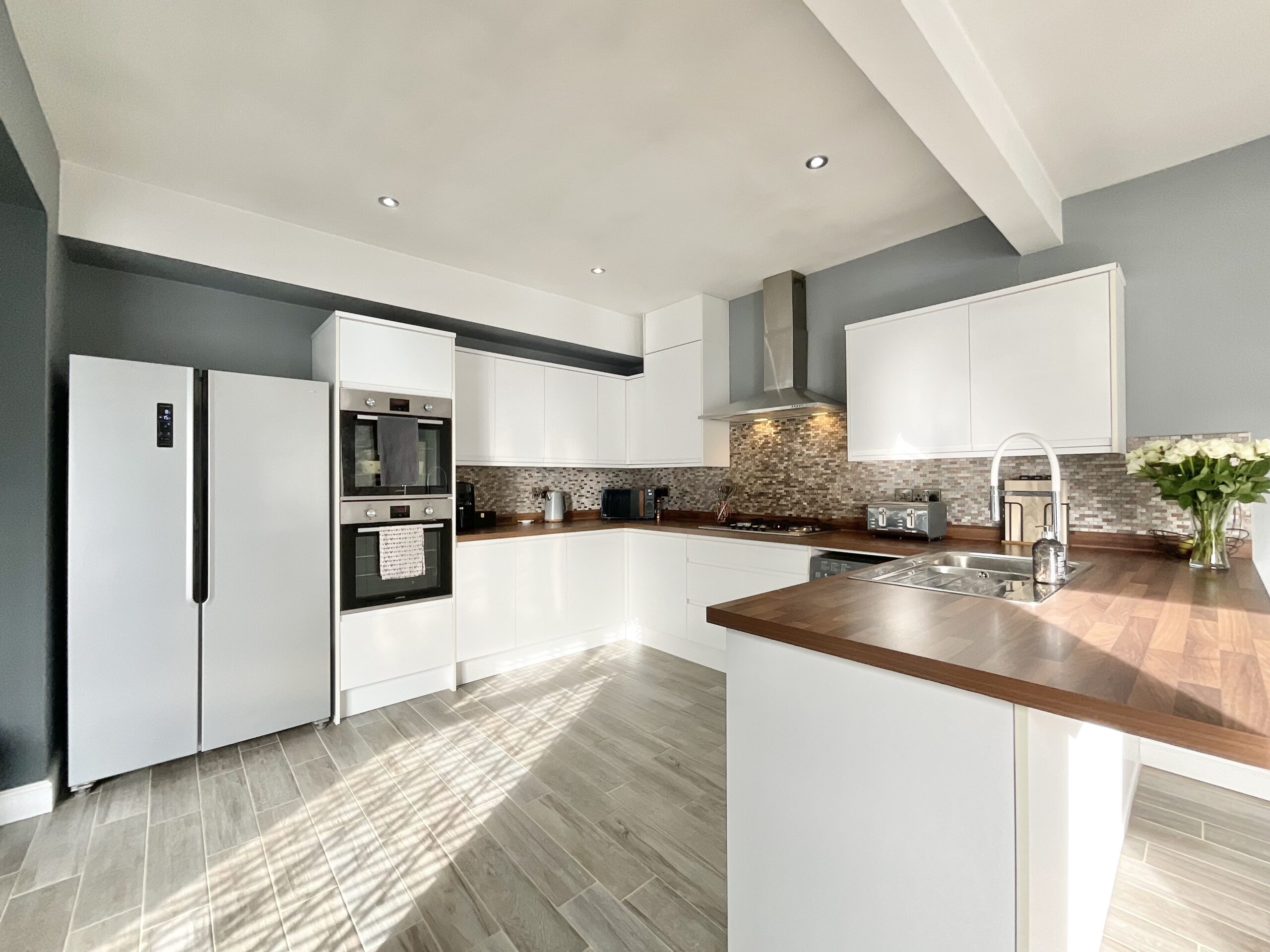 - Modern Kitchen / Dining / Breakfast Room – Well-equipped kitchen with double oven, five-ring gas hob, integrated dishwasher, space for an American-style fridge freezer