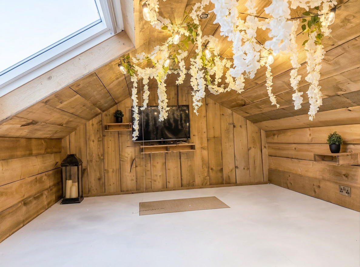 - Double Garage with Useful Den Above – Additional versatile storage or hobby space accessed via ladders above the garage