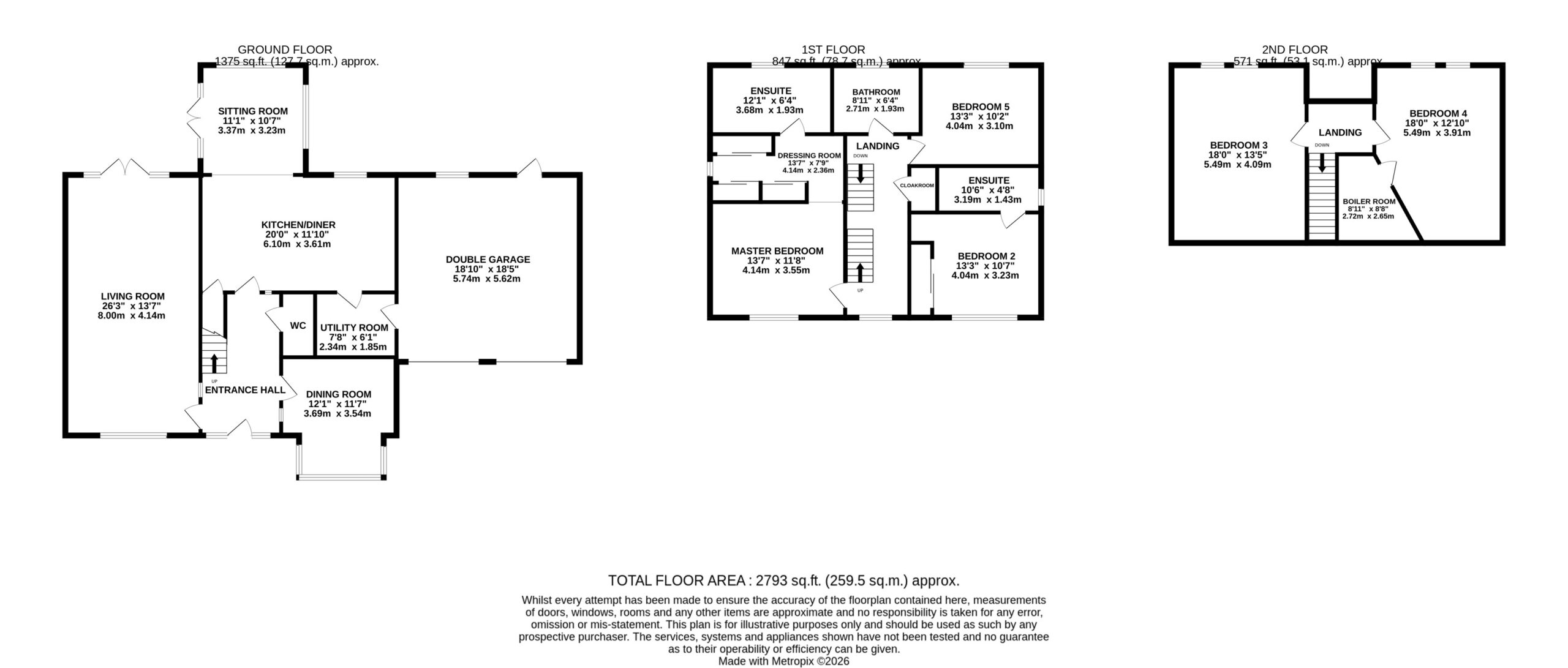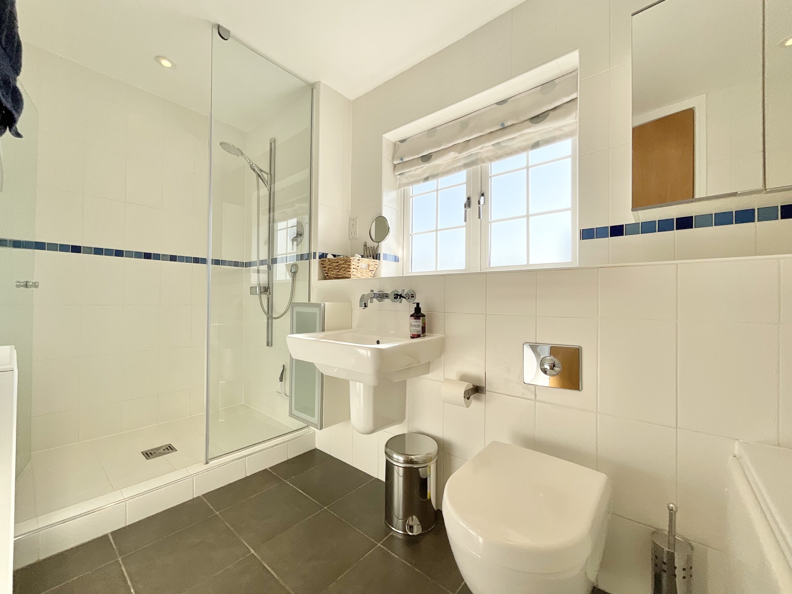 The first floor continues to impress with a luxurious principal suite. The master bedroom is a tranquil retreat, complemented by a spacious dressing room fitted with an abundance of built-in wardrobes, and a beautifully appointed ensuite featuring both a bath and a walk-in shower—offering a true sense of indulgence. Bedroom two is another generously sized double, complete with built-in wardrobes and its own stylish ensuite shower room. Bedroom five is also located on this floor, providing a versatile double room ideal for guests, children, or a home office.
